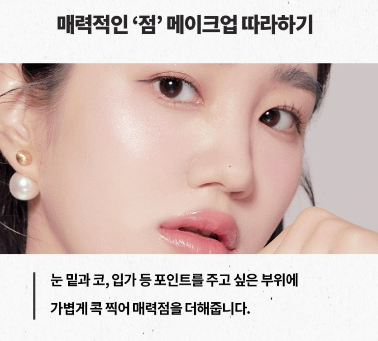 눈 밑과 코, 입가 등 포인트를 주고 싶은 부위에 가볍게 콕 찍어 매력점을 더해주세요.
