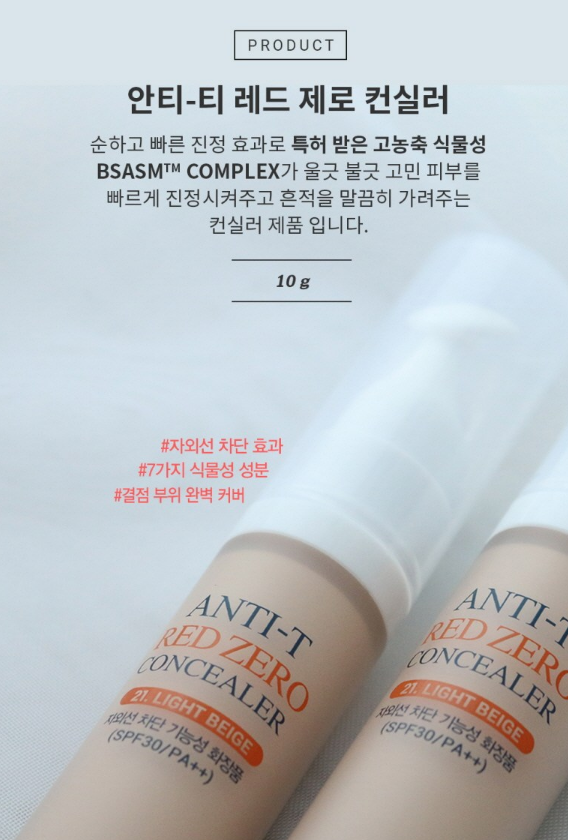 순하고 빠른 진정 효과로 특허 받은 고농축 식물성 BSASM™ COMPLEX가 울긋 불긋 고민 피부를 빠르게 진정시켜주고 흔적을 말끔히 가려주는 컨실러 제품이에요.