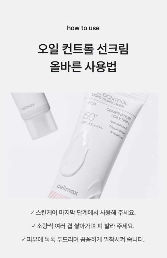 지성용선크림 찾고 계셨나요? 덥고 습한 날씨에 유분까지 많다면, 선크림 선택이 더 어려워지곤 하는데요. 셀리맥스 오일 컨트롤 라이트 선크림은 그런 지성 피부를 위해 탄생한 가볍고 산뜻한 지성용선크림이에요.
