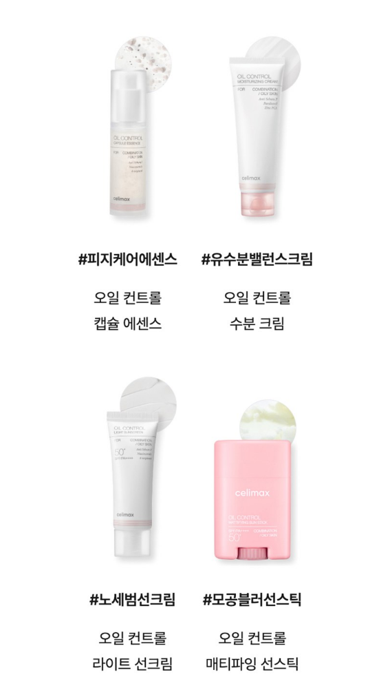 지성 피부이신 분들은 셀리맥스의 오일 컨트롤 라인 제품들을 함께 사용하시면 더 좋아요.