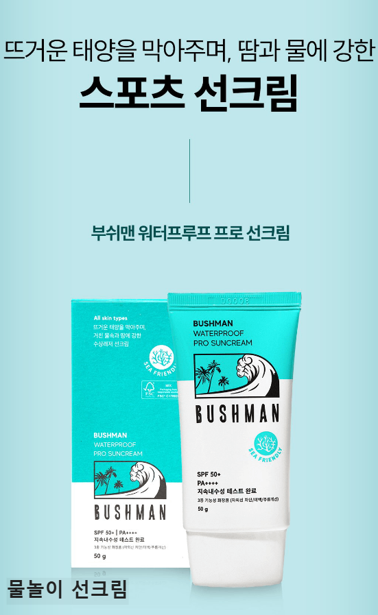 장시간 물속 활동에도 무너지지 않는 물놀이 선크림을 찾고 있었다면 이 제품을 꼭 확인해보세요. 그럼 지금부터 부쉬맨 워터프루프 프로 선크림에 대해 자세히 소개해드릴게요. 집중해서 봐주세요. ^^