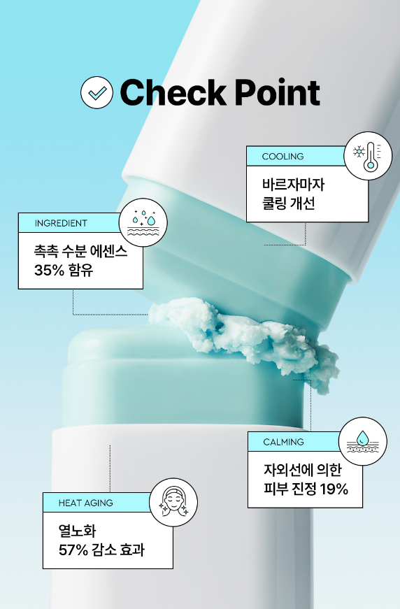 바르자마자 시원한 쿨링감과 수분감으로 여름철에도 부담없이 사용하기 좋아요.