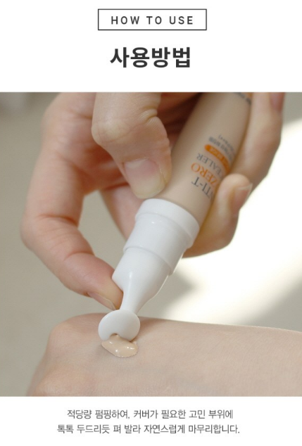 위생적인 컨실러 팁을 이용하여 손 대지않고 바를 수 있어요! 표시된 부분을 눌러 내용물을 펌핑하고 어플리케이터로 고민 부위에 도포하는 형태로 되어있답니다.