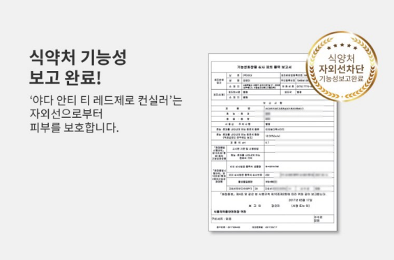 야다 안티 티 레드제로 컨실러는 자외선으로부터 피부를 보호한다는 내용으로 식약처 기능성 보고가 완료된 제품이에요!