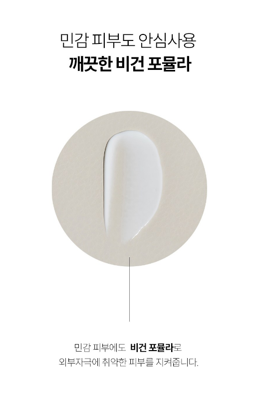 민감 피부에도 비건 포뮬라로 외부자극에 취약한 피부를 지켜줘요.