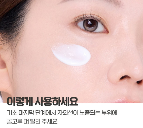 기초 마지막 단계에서 자외선이 노출되는 부위에 골고루 펴 발라 주세요.