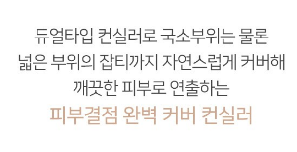 듀얼타입 컨실러로 국소부위는 물론 넓은 부위의 잡티까지 자연스레 커버해서 깨끗한 피부로 연출해주는 피부결점 완벽 커버 컨실러예요!
