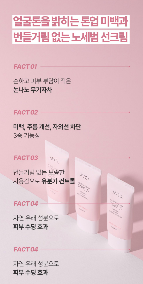 얼굴톤을 밝히는 톤업 미백 & 번들거림 없는 노세범 선크림