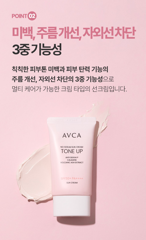 순하지만 강력한 무기자차, 화사한 핑크 톤업, 3중 기능성 제품, 보송한 사용감이 가장 큰 특징이에요.