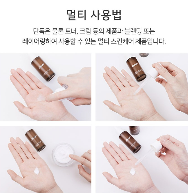 단독은 물론 토너, 크림 등의 제품과 블렌딩 또는 레이어링하여 사용할 수 있어요~!
