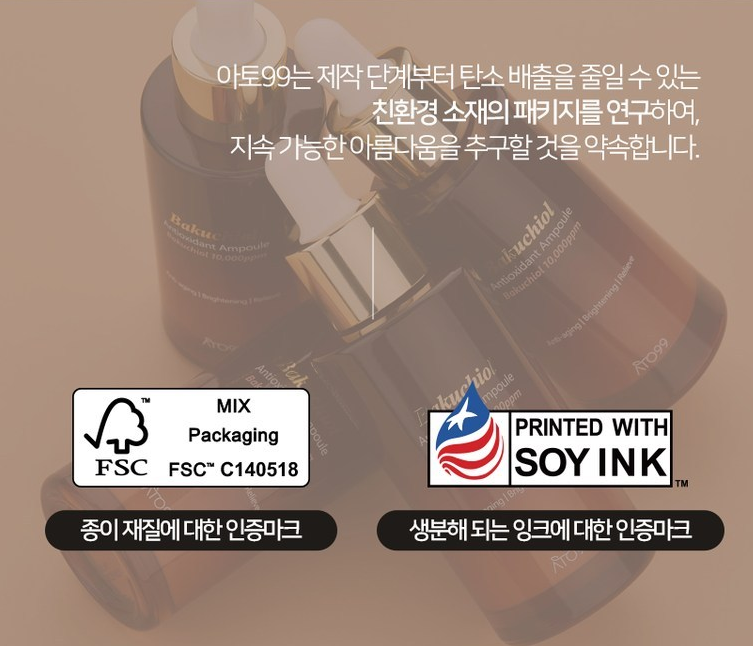 아토 99는 제작 단계부터 탄소 배출을 줄일 수 있는 친환경 소재의 패키지를 연구하여, 지속 가능한 아름다움을 추구할 것을 약속했어요.