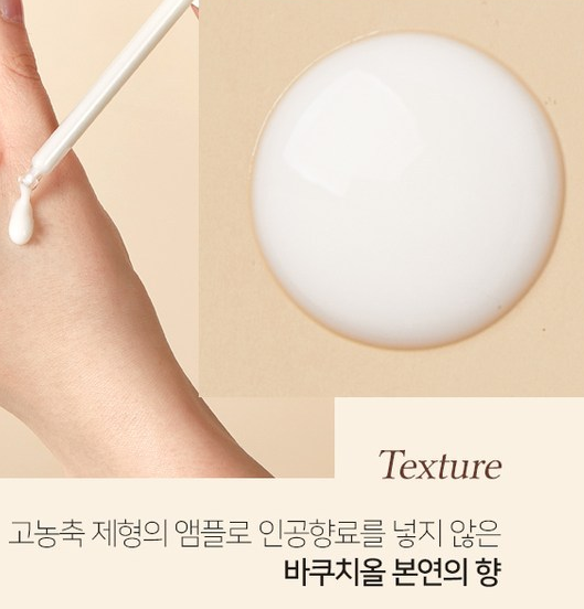 고농축 제형의 앰플로 인공향료를 넣지 않은 바쿠치올 본연의 향을 담은 제품이에요!