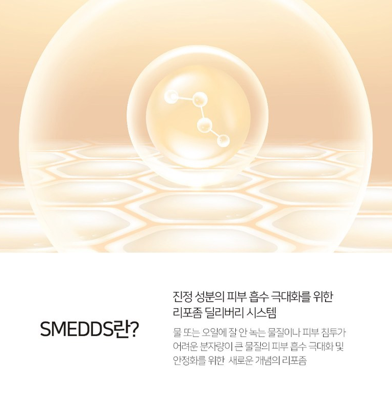 진정 성분의 피부 흡수 극대화를 위한 리포좀 딜리버리 시스템이에요. 물 또는 오일에 잘 안 녹는 물질이나 피부 침투가 어려운 분자량이 큰 물질의 피부 흡수 극대화 및 안정화를 위한 새로운 개념의 리포좀이랍니다.