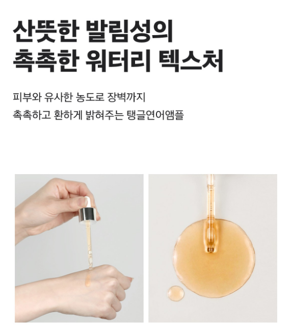 피부와 유사한 농도로 장벽까지 촉촉하고 환하게 밝혀주는 탱글연어앰플은 산뜻한 발림성의 촉촉한 워터리 텍스처가 특징이에요.