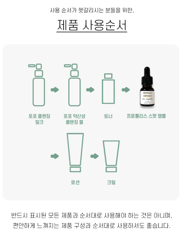 사용 순서는 토너 후 로션 전 단계에서 사용하시면 좋아요! 하지만 반드시 이 순서대로 사용해야 하는 것은 아니며, 편안하게 느껴지는 제품 구성과 순서대로 사용하셔도 된답니다.