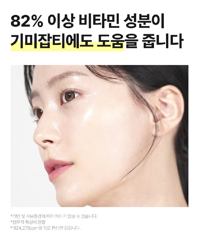 82% 이상 비타민 성분이 기미잡티에도 도움을 주고 있어요~