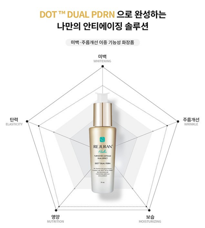 DOT™DUAL PDRN으로 탄력, 영양, 보습은 물론 미백과 주름개선까지 도와주어요.