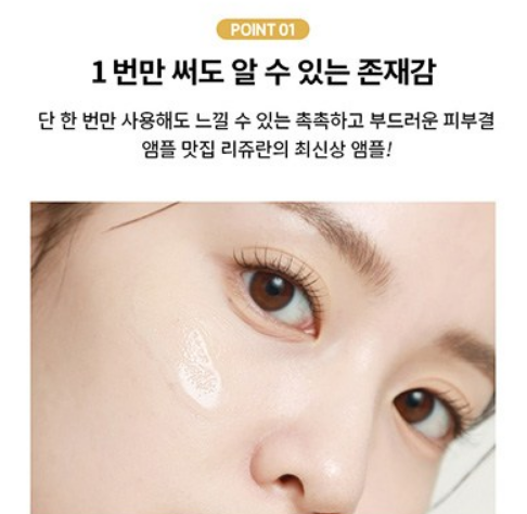 앰플 맛집 리쥬란의 최신상 앰플은 단 한 번만 사용해도 촉촉하고 부드러운 피부결을 느낄 수 있어요!
