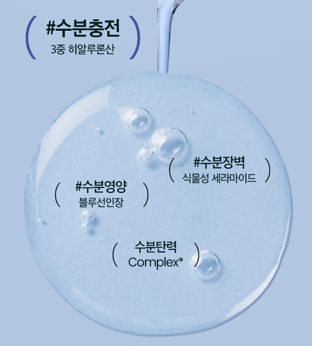 블루선인장으로 수분영양을, 식물성 세라마이드로 수분장벽을, complex로 수분탄력을 돕는답니다!