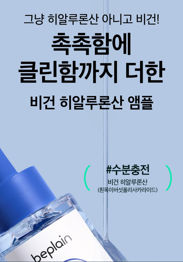 그냥 히알루론산이 아닌 비건 히알루론산 앰플로, 촉촉함에 클린함까지 더했답니다. 흰목이버섯폴리사카라이드로 수분충전을 해줘요 :)