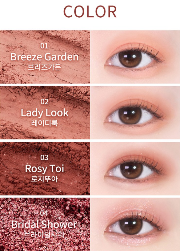 쌓을수록 화장이 두꺼워지지 않고 쌓을수록 예쁜 섀도우예요.