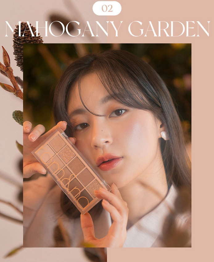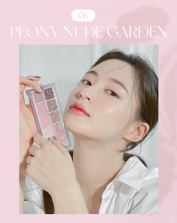 팜파스 가든, 마호가니 가든, 로즈버드 가든, 더스티 포그 가든, 쉐이드&섀도우 가든, 라이트&글리터 가든, 피오니 누드 가든, 베리 푸시아 가든, 피치 달리아 가든 9가지 팔레트로 구성되어 있어요!