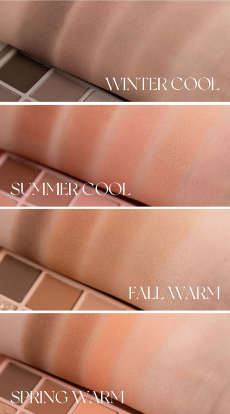 봄웜 브라이트부터 겨쿨 브라이트, 겨울 쿨톤, 여름 쿨톤, 쿨 누드 컬러, 웜 누드, 가을 웜톤, 봄 웜톤까지 모든 피부톤이 사용할 수 있도록 퍼스널 컬러에 맞는 팔레트 시리즈인 것이 특징이에요!