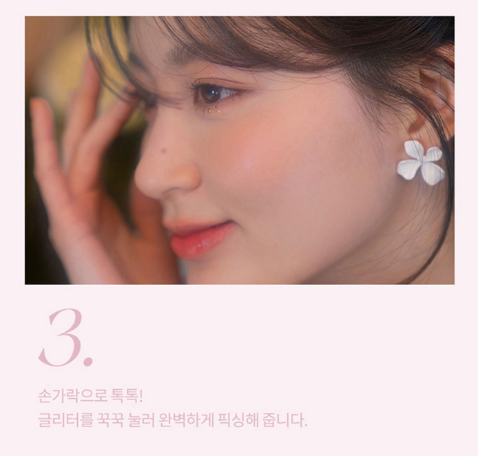 체온에 녹아 퍼석거림 없이 촉촉하게 발리는 글리터 포뮬러예요. 입자가 커도 날림 없이 오래 유지되는 글리터랍니다:)