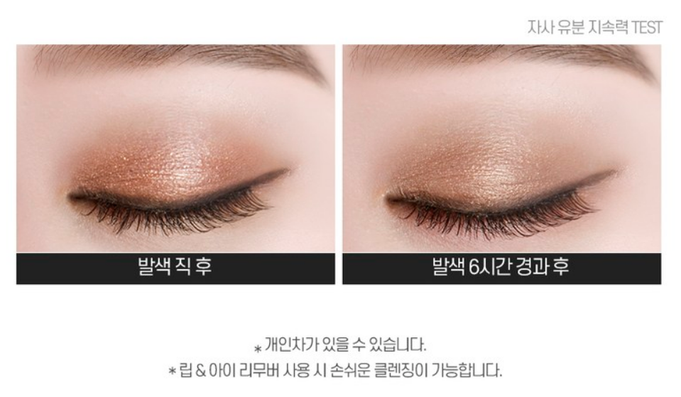 유분, 수분에 강한 섀도우이기 때문에 지울 때는 립앤아이리무버로 지워주셔야 쉽게 지울 수 있어요!