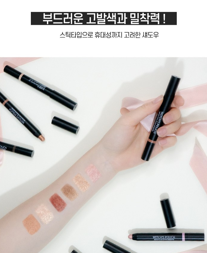 그래서 오늘은 아이섀도우 펜슬 제품 한 가지를 소개해볼까하는데요. 바로 위치스파우치 워터프루프 스틱 아이섀도우예요! 그럼 포스팅 시작할게요~!