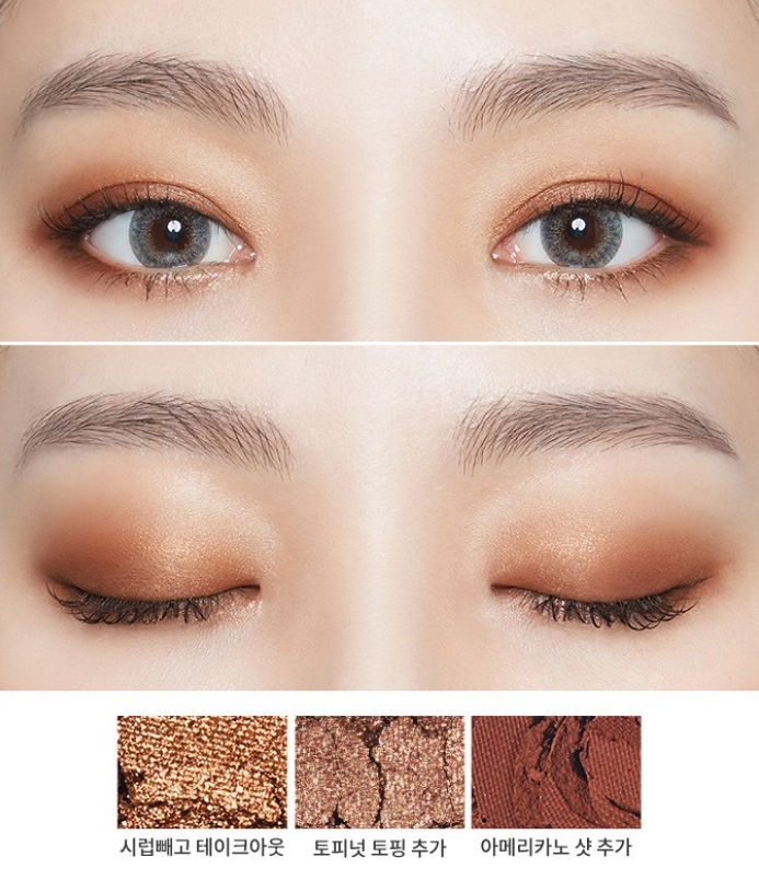 시럽빼고 테이크아웃, 토피넛 토핑 추가, 아메리카노 샷 추가 컬러로 위와 같은 딥한 음영 메이크업을 연출할 수 있어요!