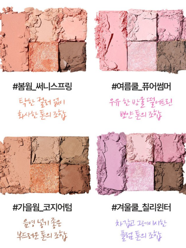 써니스프링, 퓨어썸머, 코지어텀, 칠리윈터 4가지 팔레트 시리즈가 있는데요. 이 중에서 오늘 소개할 컬러는 퓨어썸머와 칠리윈터랍니다!