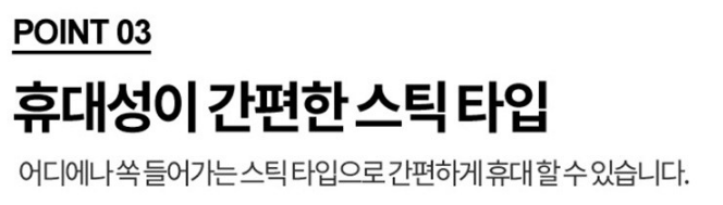 어디에나 쏙 들어가는 스틱 타입으로 간편하게 휴대할 수 있어요!