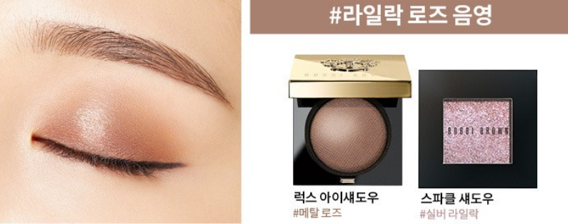 럭스 아이섀도우 메탈 로즈 컬러와 스파클 섀도우 실버 라일락 컬러 함께 발색하면 라일락 로즈 음영을 연출할 수 있어요!
