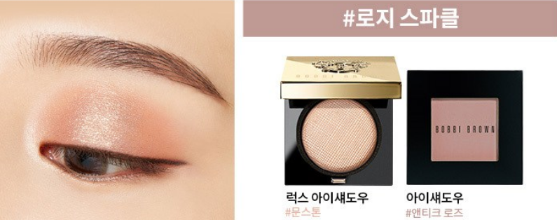 럭스 아이섀도우 문스톤과 아이섀도우 앤티크 로즈 컬러 함께 사용하면 로지 스파클 컬러를 연출할 수 있어요!