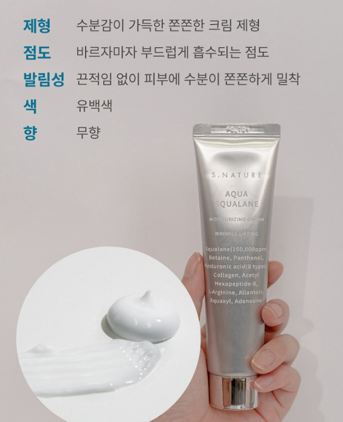 그래서 오늘은 무겁게 올라가는 수분크림 말고, 가벼운 수분크림 추천을 한 번 해볼까해요. 바로 에스네이처 아쿠아 스쿠알란 수분크림인데요. 가벼운 제형인만큼 메이크업 전에 사용하기도 정말 좋은 제품이에요! 그럼 포스팅 시작해볼게요~!