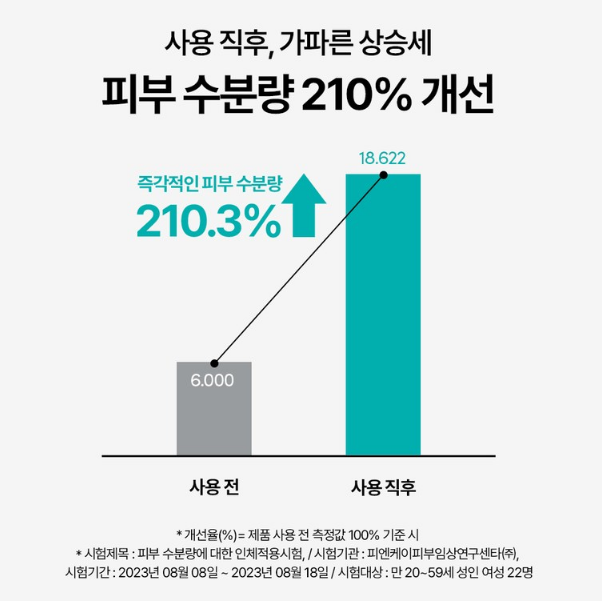 사용 직후 피부 수분량이 210% 개선되는 현상이 나타났어요!