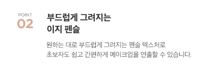 원하는 대로 부드럽게 그려지는 펜슬 텍스처로 초보자도 쉽고 간편하게 메이크업을 연출할 수 있다고 해요!