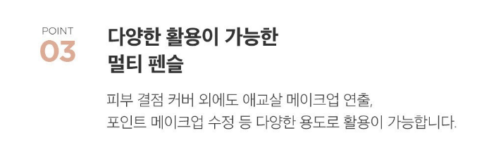 피부 결점 커버 외에도 애교살 메이크업 연출, 포인트 메이크업 수정 등 다양한 용도로 활용이 가능해요.