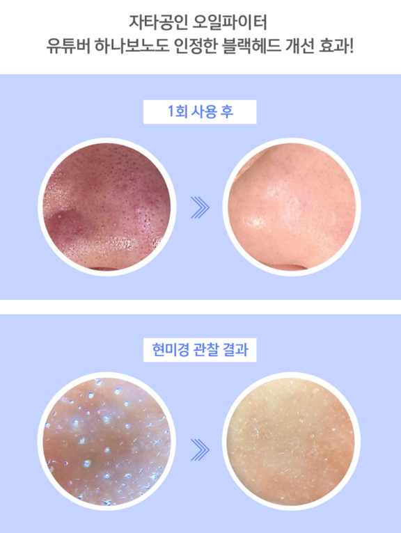 자타공인 오일파이터 유튜버 하나보노도 인정할만큼 블랙헤드 개선 효과가 뛰어난 제품이에요.