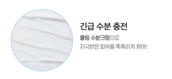쿨링 수분크림을 자극받은 피부를 촉촉하게 케어해줘요.