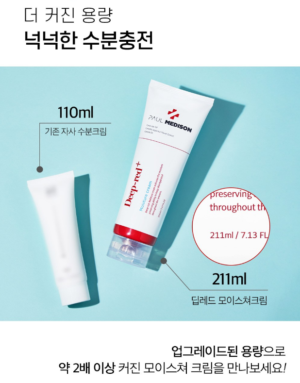 업그레이드된 211ml 대용량으로 약 2배 이상 커진 모이스쳐 크림을 만나보세요!