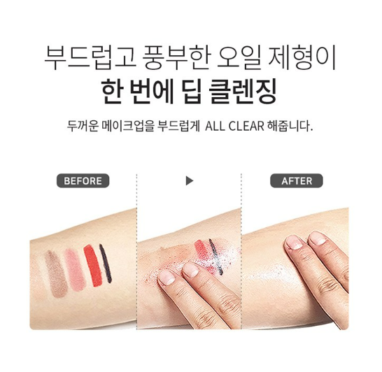 부드럽고 풍부한 오일 제형이 두꺼운 메이크업을 한 번에 딥 클렌징 해줘요.