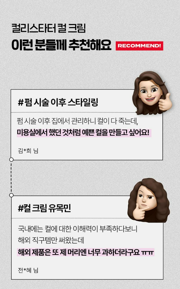 이럴 때 곱슬머리 컬크림을 활용하시면 미용실에서 했던 것 처럼 예쁘고 자연스러운 컬을 쉽고 간단하게 집에서도 스타일링 할 수 있어서 좋더라구요.