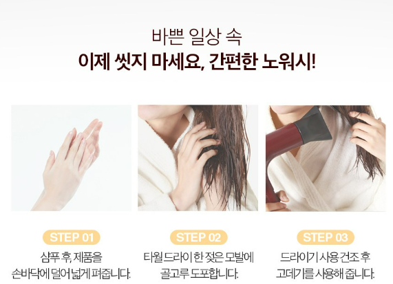 바쁜 아침 번거로워서 포기해야만 했던 헤어 관리 이제 노워시 미라클 헤어 밤으로 빠르고 편하게 관리할 수 있어요.