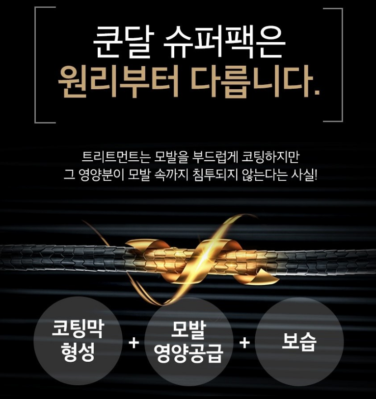 쿤달 슈퍼팩은 코팅막을 형성해 모발에 영양을 공급하고 보습까지 부여해줘요.