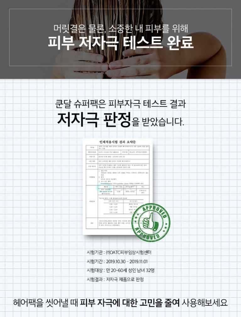 쿤달 슈퍼팩은 피부 자극 테스트 결과 저자극 판정을 받은 제품으로 피부 자극에 대한 고민 없이 사용할 수 있어요.