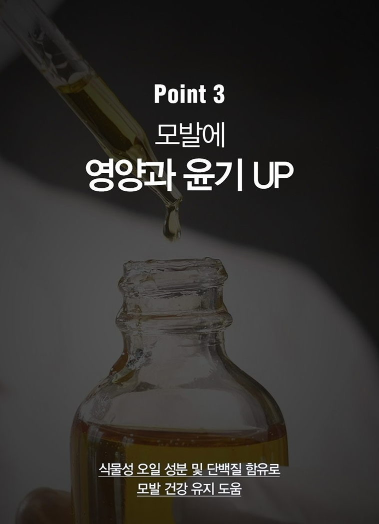 식물성 오일 성분 및 단백질 함유로 모발 건강 유지에 도움이 돼요.