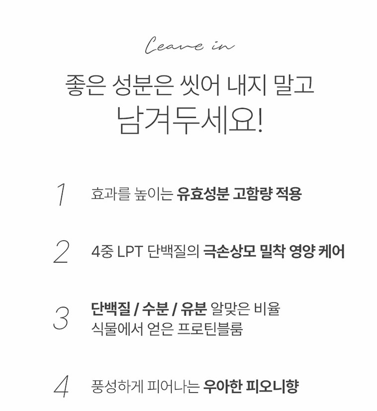 좋은 성분, 씻어 내지 말고 남겨두세요!