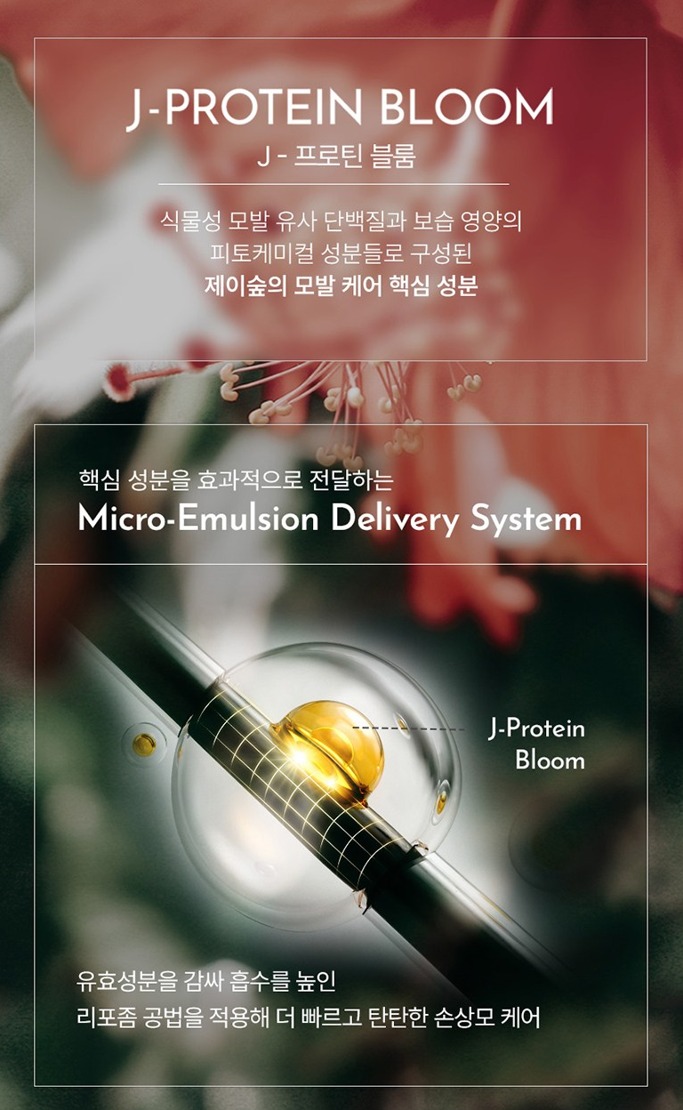 식물성 모발 유사 단백질과 보습 영양의 피토케미컬 성분들로 구성된 제이숲의 모발 케어 핵심 성분을 흡수를 높인 리포좀 공법을 적용해 더욱 빠르고 탄탄하게 손상모 케어가 가능하도록 했어요.
